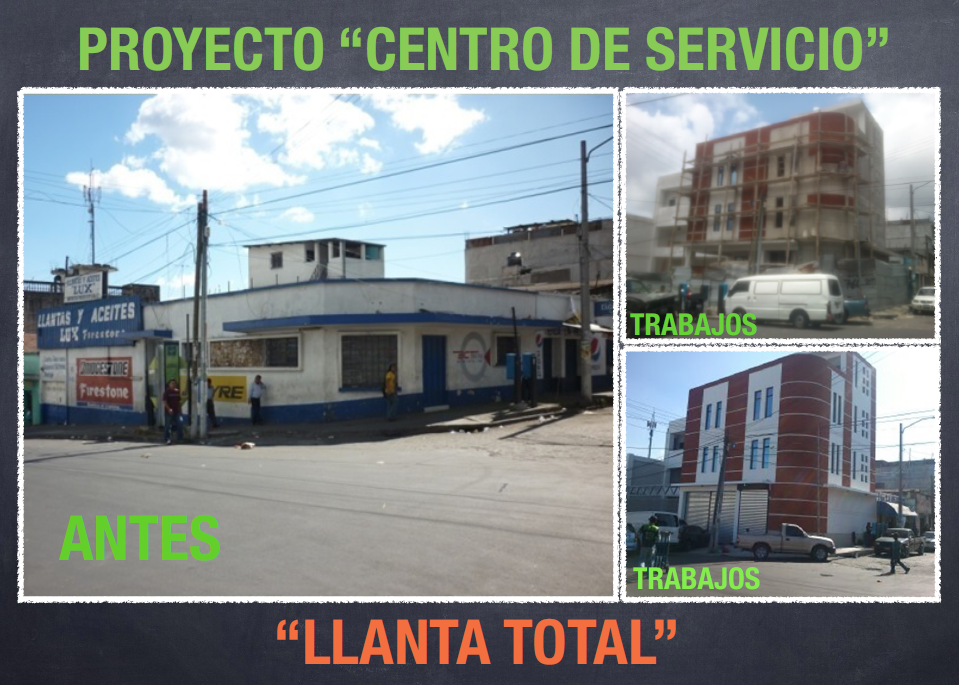 LLanta Total Project Info Project Type Diseño y Construcción Location Zona 8, Guatemala More Info Proyecto Centro de Servicio Llanta Total Diseño y construcción Centro de Servicio Z.8. LLANTA TOTAL Construcción Centro de Servicio Z.8. Anterior